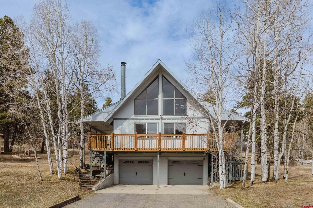 Welcome to your Colorado Cabin in the Pagosa Lakes area! This recently renovated 3 bedroom, 2 bathroom home offers the perfect blend of modern style and natural beauty. Tucked in between groves of Aspen trees, the spacious wraparound deck invites you to relax and enjoy sweeping hillside views. The front of the home faces south, which is great for quick snow melt off on the driveway in winter months. Inside, the open-concept living, dining, and kitchen areas create a warm and welcoming space filled with natural light from the wall of windows. The 2024 renovations add a modern touch, especially in the kitchen and bathrooms featuring quartz counter tops and contemporary finishes. The private primary suite, set apart from the other bedrooms, offers a peaceful retreat with its own en-suite bathroom and a cozy loft sitting area. With a large two-car garage and additional storage space, you’ll have plenty of room for all your outdoor gear and seasonal items. The 0.25 acre property backs up to a greenbelt, giving you a little extra elbow room from the neighbors. This thoughtfully updated home offers comfort, style, and convenience—ready for you to make it your own.