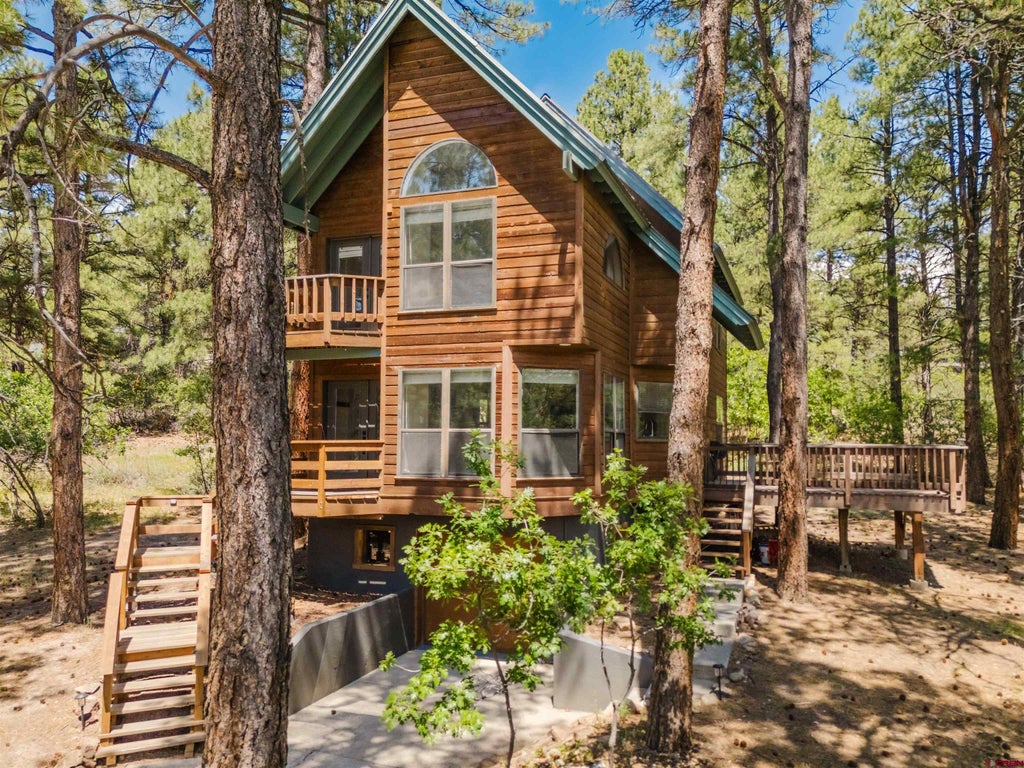 Tucked into the pines feeling like a modern-day tree house, this one-of-a-kind home in Lake Pagosa Park offers a peaceful setting with eastern mountain views and total Colorado character. It features a flex space that could easily be used as a bedroom, home office, or creative studio. Each bedroom has its own private deck, giving you a quiet outdoor escape whenever you need it. Off the kitchen, a large main deck is perfect for grilling, entertaining, or relaxing in the fresh air - it’s even plumbed and ready for a hot tub. The home backs to greenbelt, so you’ll never have a backyard neighbor, just a serene setting and extra breathing room. You’re also just right around the corner from Lake Pagosa and about a 10-minute drive to National Forest access in Turkey Springs for hiking, biking, and exploring the best of Southwest Colorado. If you’ve been looking for something with charm, this is it.